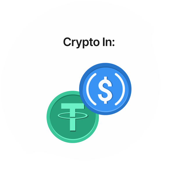 Send USDT or USDC, receive local currency in your business bank account. Built for traders and cross-border operations.
